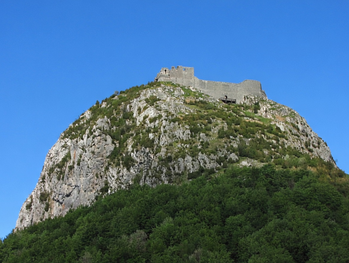 Sur un piton rocheux à mille deux cents mètres d'altitude, dans l'Ariège, une forteresse en ruine surplombe un champ qu'on appelle encore aujourd'hui le Champ des Brûlés.